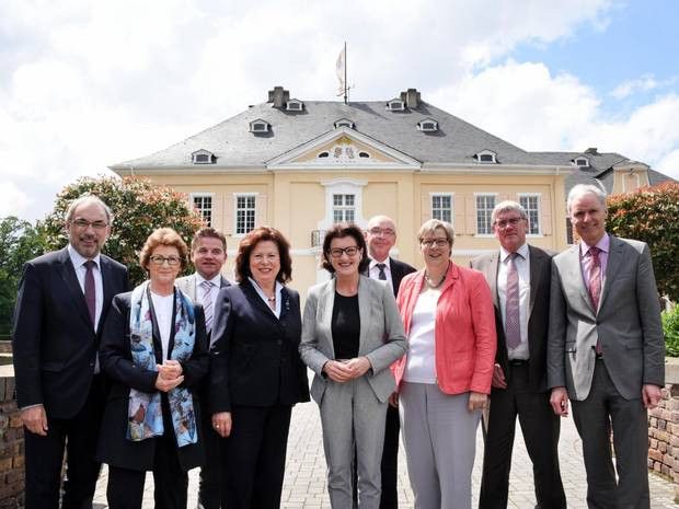 03.06.2016. Rhein-Sieg-Kreis. Regierungspräsidentin Gisela Walsken trifft sich auf Einladung der Landtagsabgeordneten Ilka von Boeselager mit den linksrheinischen Bürgermeistern, Beigeordneten sowie Landrat Sebastian Schuster auf Schloss Miel.